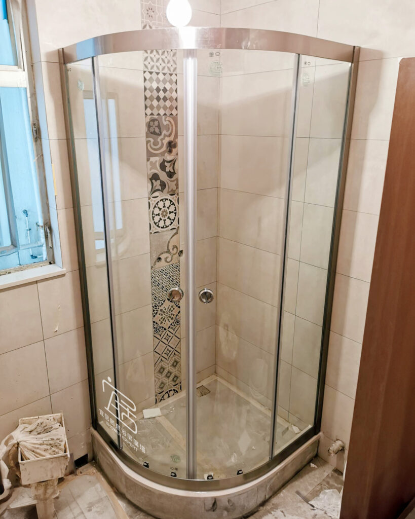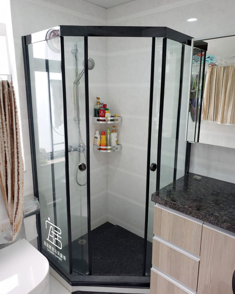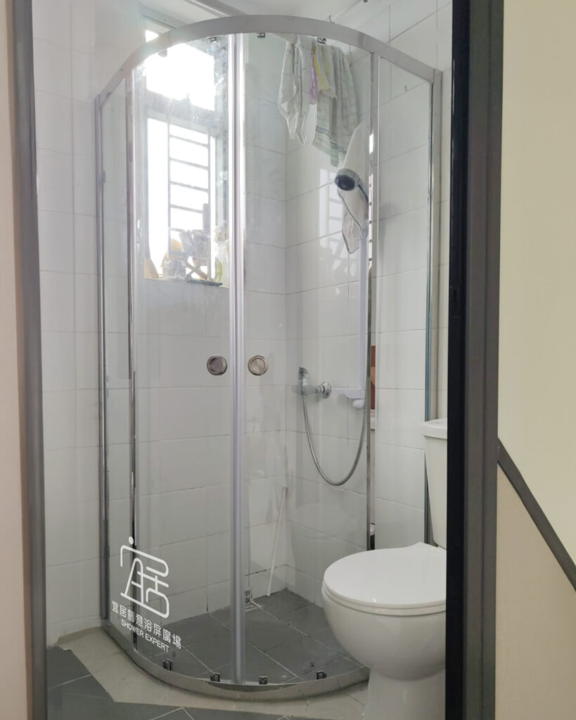 AT-01B不銹鋼鋼幼框單趟鑽石型,非常適合新型居屋、公屋,這幾年新落成的居屋、公屋單位通常都是有鑽石形跌級,可選用鑽石型,扇形浴屏或全弧型。