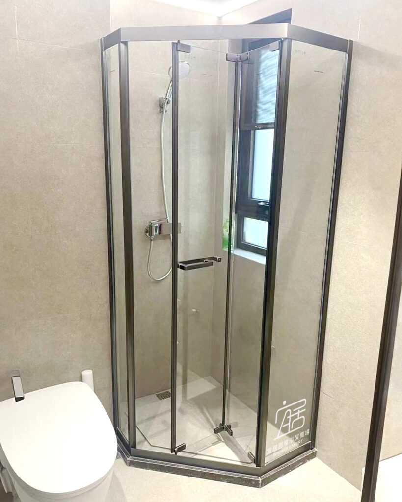 AT-01B不銹鋼鋼幼框單趟鑽石型,非常適合新型居屋、公屋,這幾年新落成的居屋、公屋單位通常都是有鑽石形跌級,可選用鑽石型,扇形浴屏或全弧型。